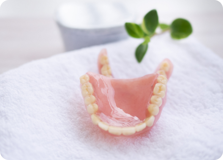 金属の留め具がなく、自然な見た目の入れ歯を作製します。修正の際にお預かりすることがあります。